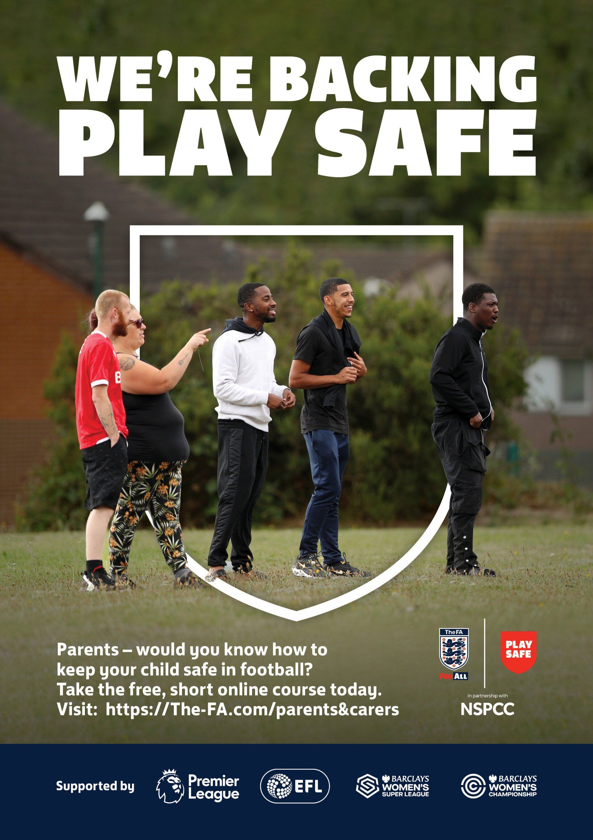 Play safe is aimed at educating parents/carers on how to safeguard players with key messages to encourage them to take the free safeguarding course.